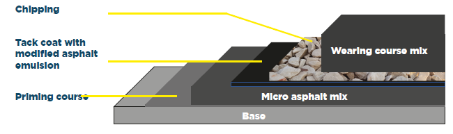 - Wearing course with modified asphalt, tailored tothe stresses and loads of the structure in question