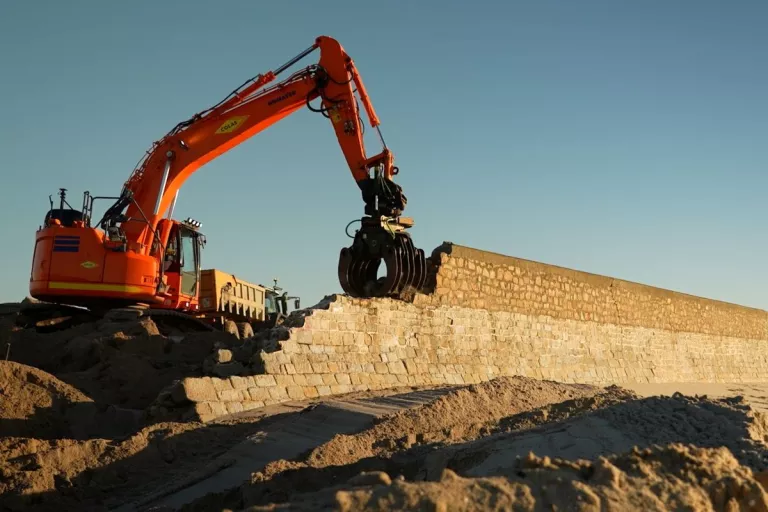 Les équipes Colas ont ainsi mis en œuvre une solution de reconstruction de dune, reposant sur un noyau en kaolin recouvert de sable. Cette technique permet de recréer un ouvrage naturel capable d’absorber l’énergie des vagues, tout en s’intégrant durablement dans le paysage côtier.