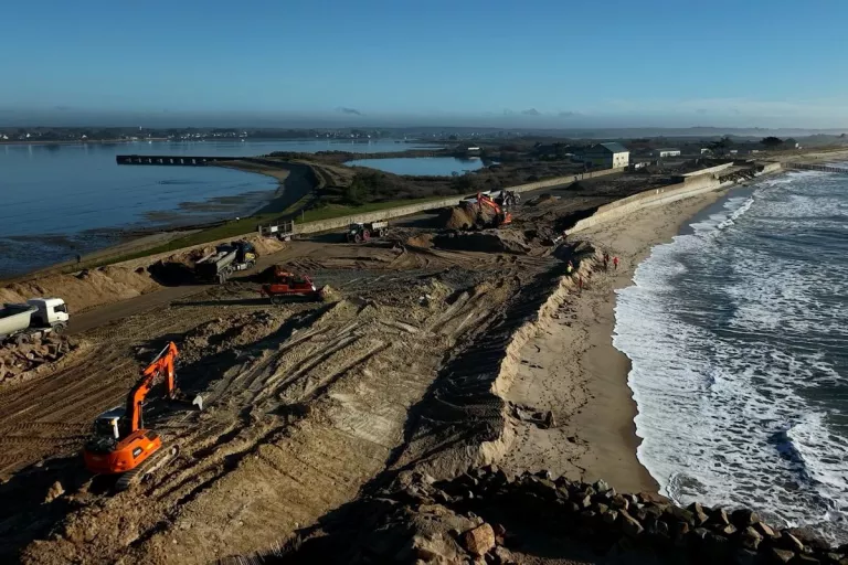 Traditionnellement protégées par des ouvrages artificiels, certaines zones littorales montrent aujourd’hui les limites de ces solutions face aux dynamiques naturelles. À Gâvres, le choix a été fait de démanteler un ancien ouvrage en béton pour redonner toute sa place au fonctionnement naturel du cordon dunaire.