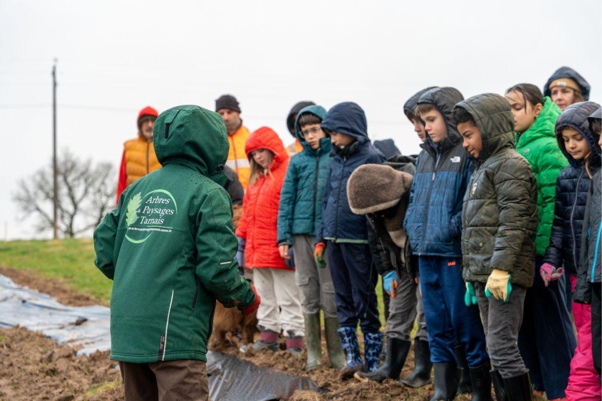 Encadrés par l'association Arbres et Paysages Tarnais et accompagnés par les collaborateurs Colas, les enfants ont pu observer et comprendre sur le terrain le rôle fondamental des haies dans la lutte contre l’érosion, la protection du climat et le maintien de la biodiversité.