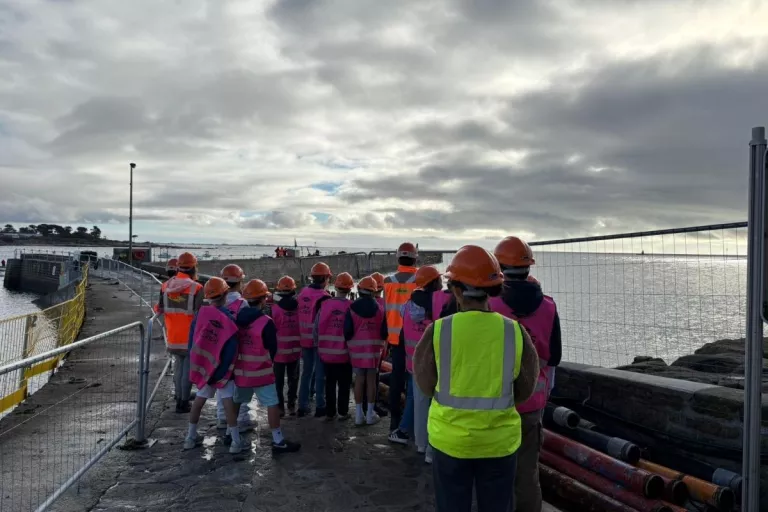 Au-delà des enjeux techniques, ce chantier a également été l’occasion de faire découvrir les métiers des travaux maritimes. Les équipes ont ainsi accueilli des étudiants de l’IUT Génie Civil de Rennes ainsi que des jeunes de Ploemeur.